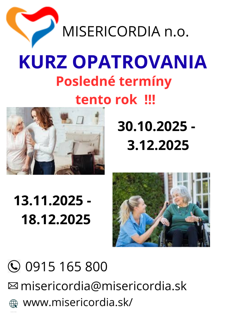 Kurz opatrovania: 30.10.2025 – 3.12.2025 a 13.11.2025 – 18.12.2025